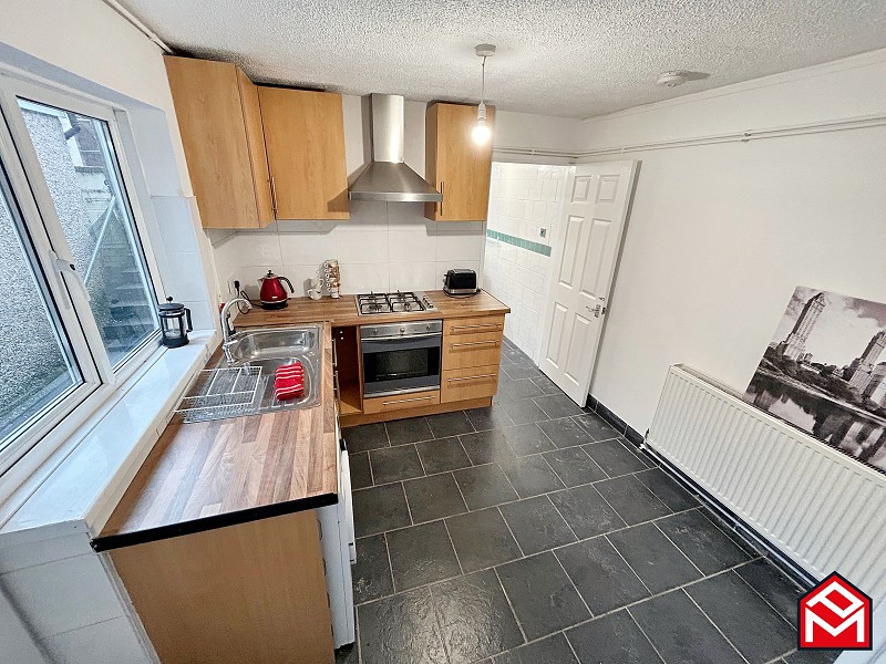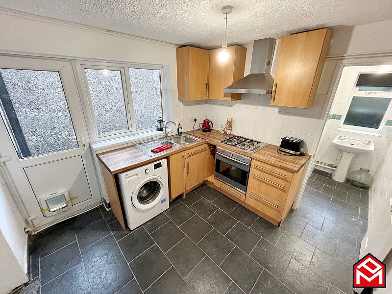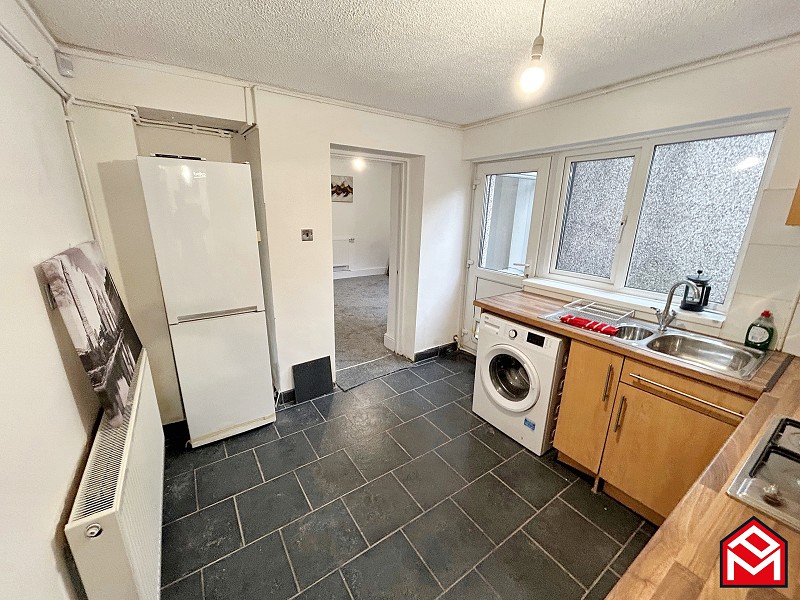 uPVC double glazed door to rear. uPVC double glazed window. A range of wall mounted and base units with matching wood effect worktops. Plumbing for washing machine. Gas hob and electric oven. Space for freestanding fridge freezer. Tiled floor. Plastered walls. Access to family bathroom. Radiator.