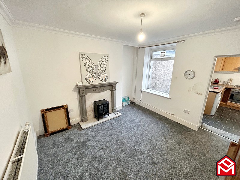 uPVC double glazed window to rear. Plastered walls and ceiling. Fitted carpet. Access to understairs storage cupboards. Fireplace with surround and electric fire. Access to kitchen. Radiator.