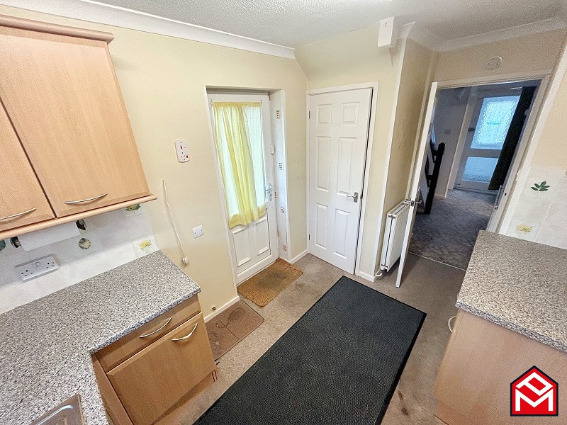 UPVC double glazed window, fitted kitchen with a range of wall and floor cupboards, with contrasting marble effect worktops, Plumbing for washing machine, numerous electric points, access to storage, UPVC double glazed door to rear garden.