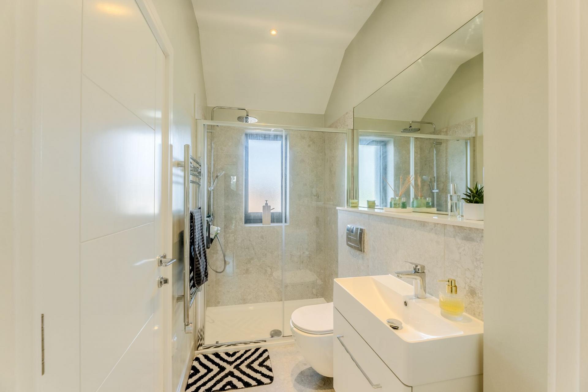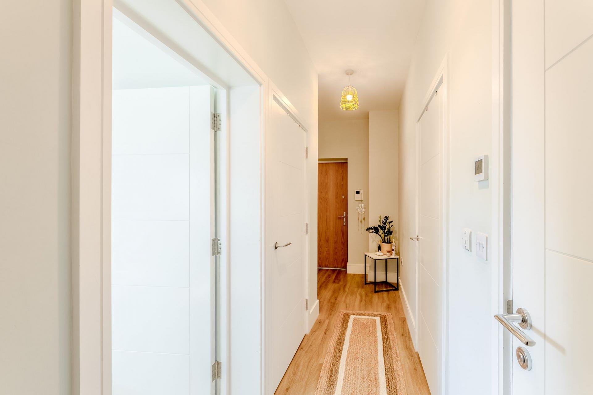 Inside, the apartment offers two generous double bedrooms, each with its own modern en-suite, and a bright open-plan living space with a sleek, high-quality kitchen. A south-facing Juliet balcony brings in plenty of natural light and provides a lovely spot to enjoy the outlook.