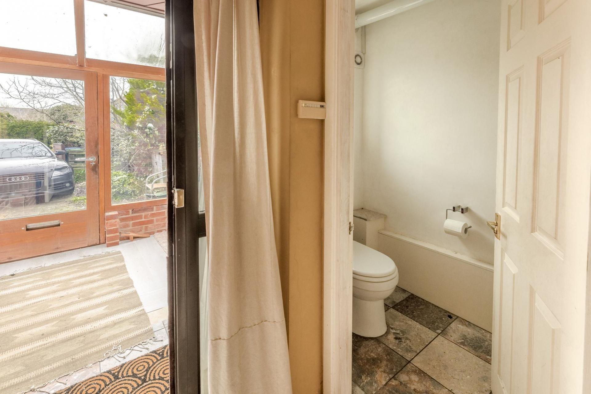 Step inside and you’ll find a wide hallway with polished marble tiles that flow seamlessly through to the kitchen and dining area. On the right, what was once the garage has been converted into a bright and flexible space ideal as a guest room, studio or even a gallery. There’s also a utility room and a ground floor WC just off the hall.