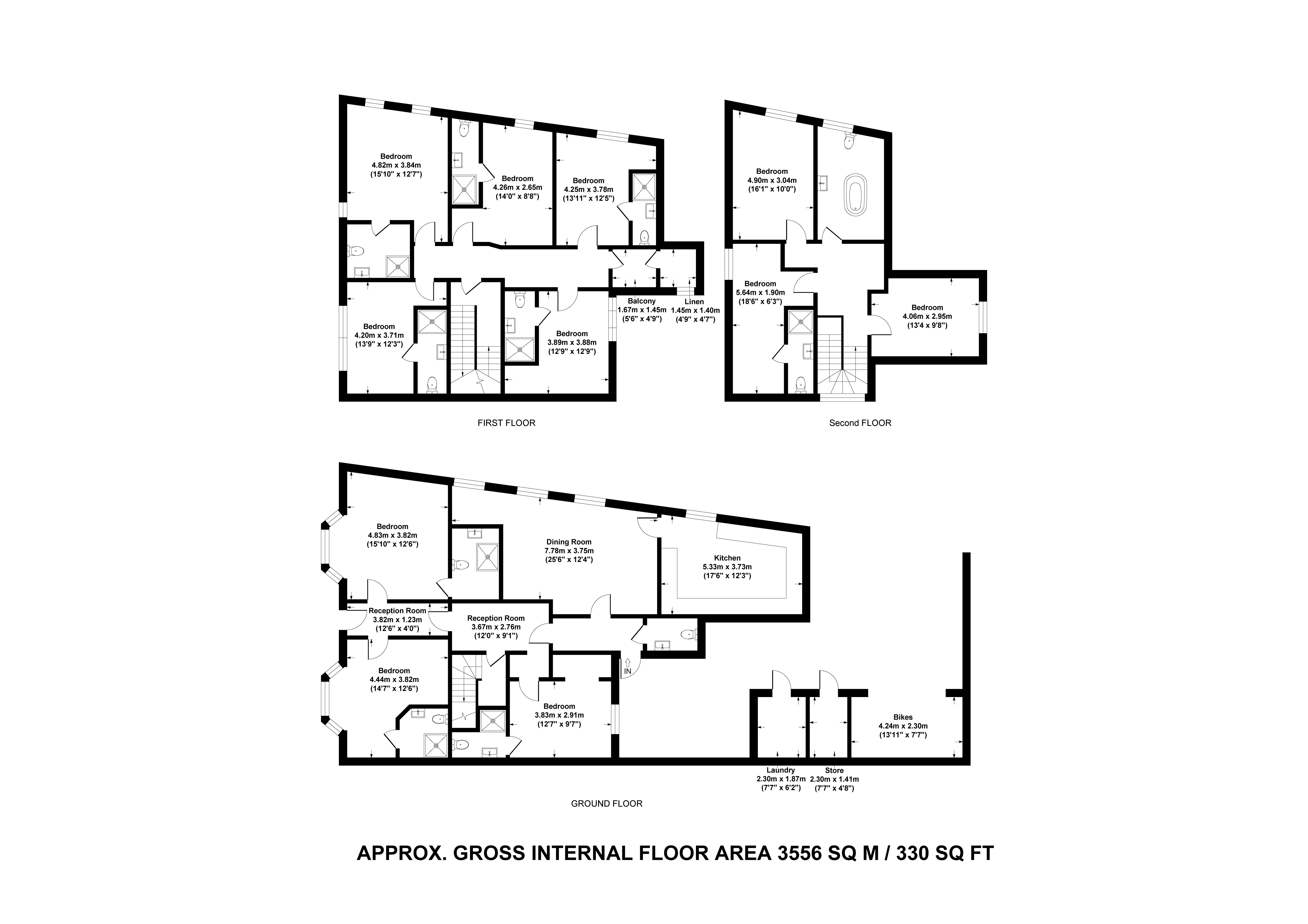 On the first floor are five further bedrooms with en suite shower rooms, and on the second floor, an additional three bedrooms and one bathroom with character roll-top bath.