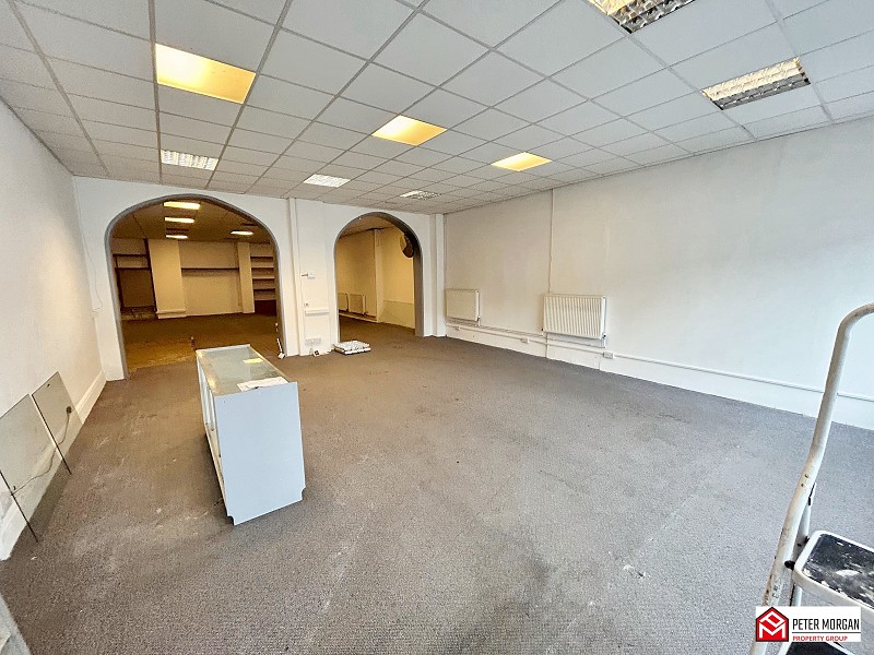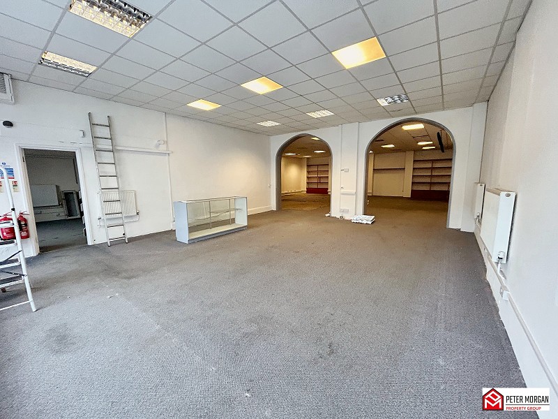 Display window and door to front. Three radiators. Carpet. Suspended ceiling. Telephone and internet connection points. Boxed in electrical consumer unit. A variety of electrical power points. Two archways leading to rear room.