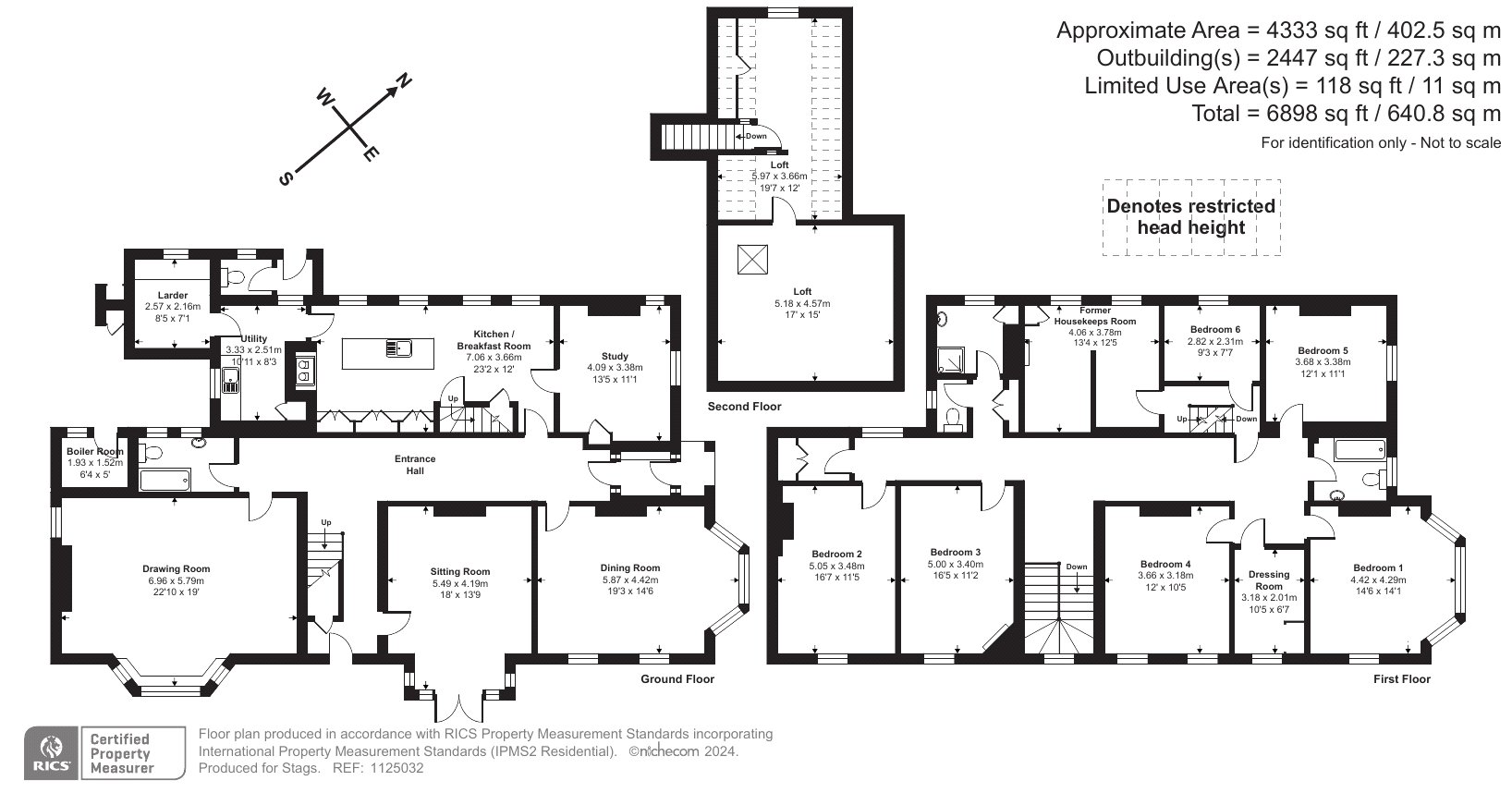 From the landing, steps lead to what was formerly the housekeeper's rooms, which could easily be repurposed as an additional bedroom, home office, or hobbies room. This versatile space also provides access to Bedroom Six.