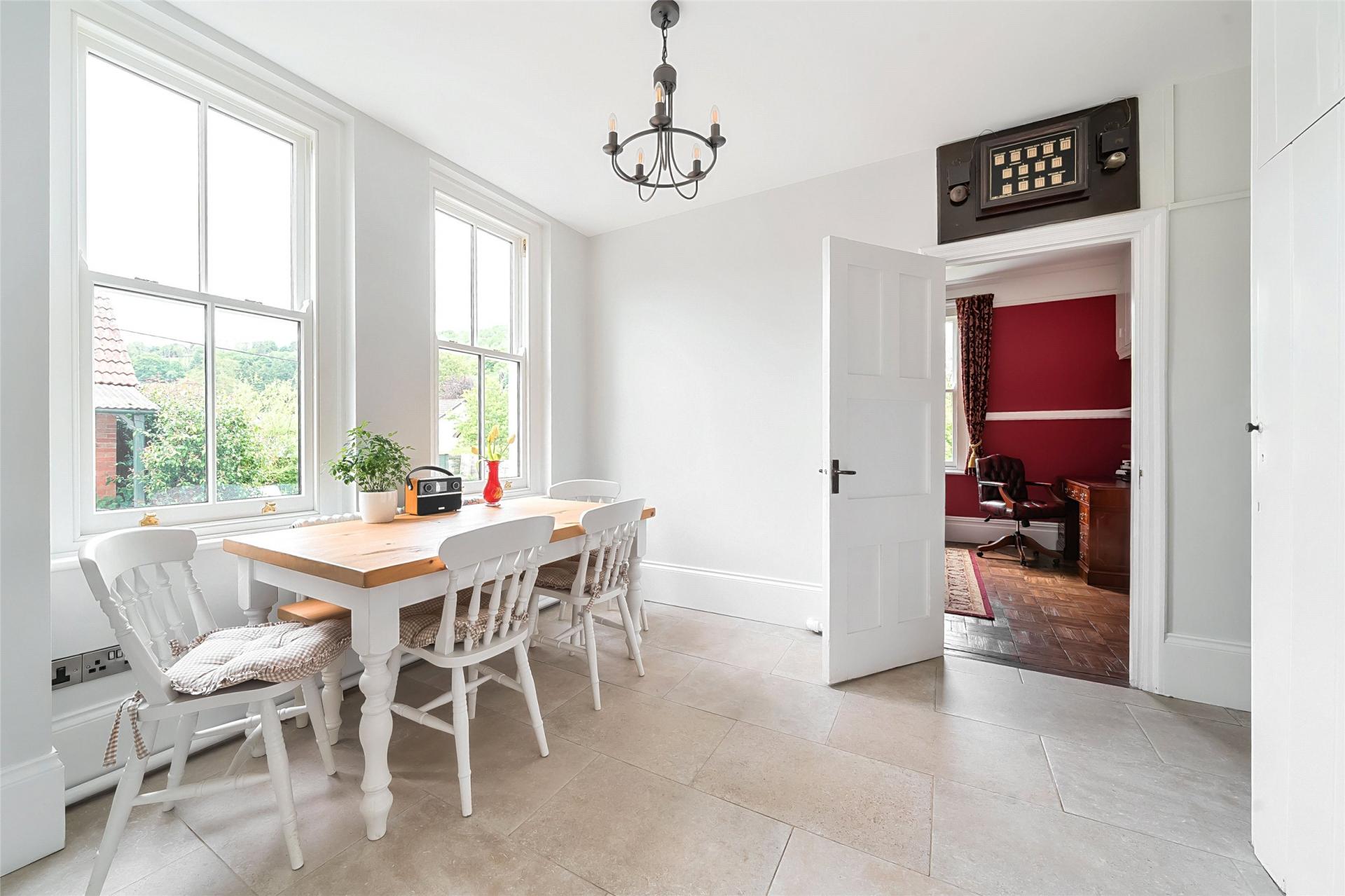 Also on the ground floor is a charming study/snug, offering a warm and inviting space with a beautiful ornate fireplace as its focal point. Windows provide delightful views of the front elevation, filling the room with natural light. This versatile space is perfect for those requiring a home office or an additional reception room, making it a highly functional and flexible addition to the home.