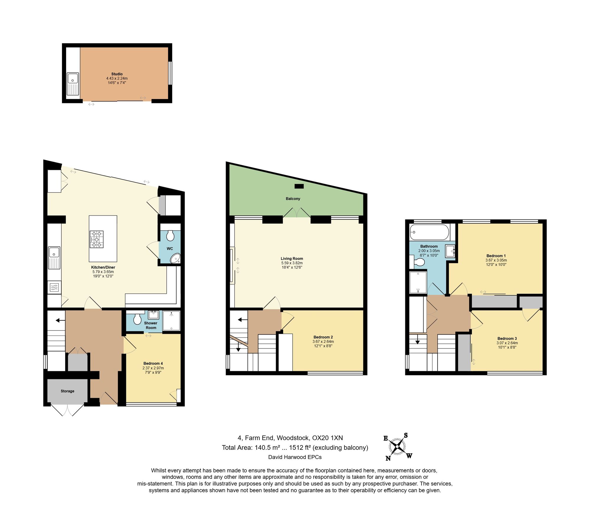 On the first floor, you shall find a double bedroom with built-in storage. To the rear, above the kitchen, is a beautifully designed living room featuring French doors and full-height glass panes that flood the space with natural light. A bespoke wooden-effect wall cleverly conceals the television, maintaining a clean and elegant aesthetic. Step out onto the private balcony and enjoy your morning coffee while taking in panoramic views across Woodstock, including the rooftops and the historic St Mary Magdalene Church.
