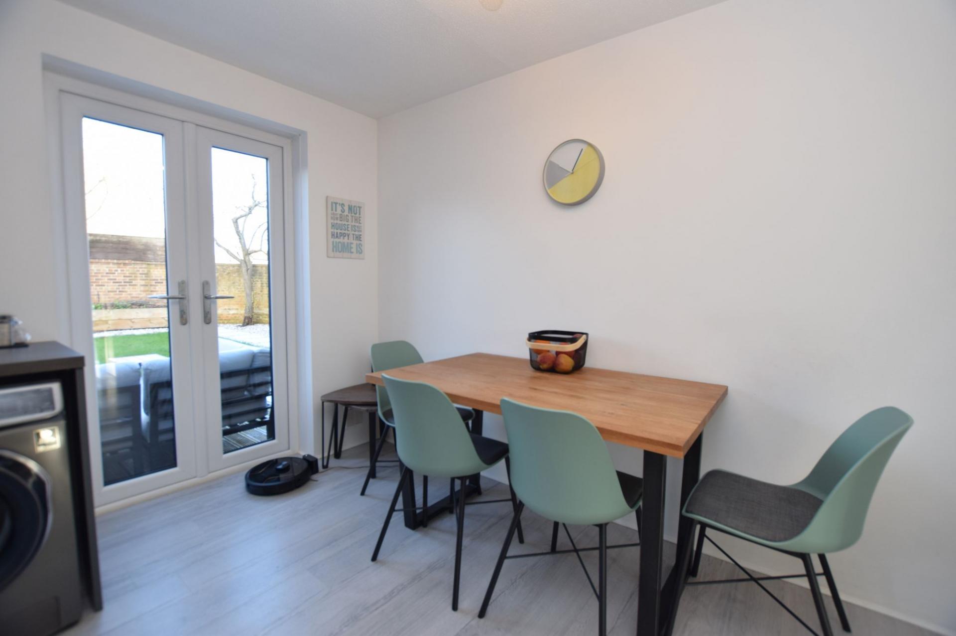 - Kitchen doors leading to garden patio